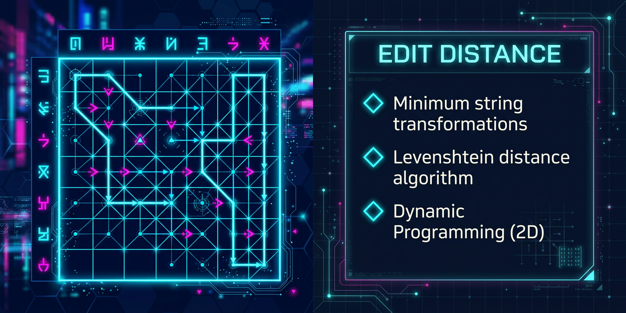 The edit distance between two strings refers to the minimum number of character insertions, deletions, and substitutions required to change one string to the other. For example, the edit distance between “kitten” and “sitting” is three: substitute the “k” for “s”, substitute the “e” for “i”, and append a “g”.