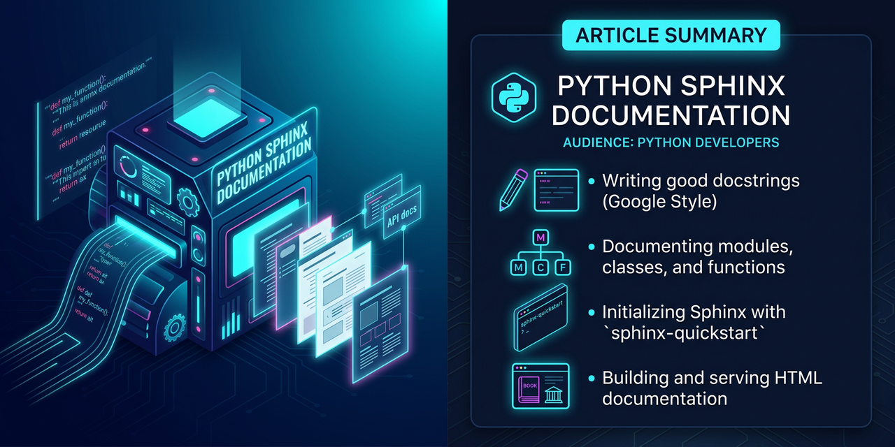 当编写比较大的库时,如果代码具有良好的注释规范,可以使用 sphinx 来生成文档。本文主要介绍生成文档 的步骤,以及编写代码中注释的添加方式。本文主要参考 Reference,更加详细的使用说明可以参考它。 本文主要简单介绍下基本的规范,以及生成文档的方式。